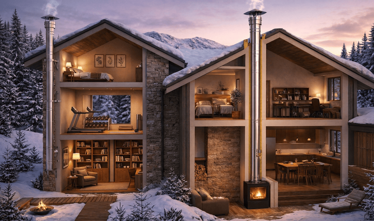 Advanced hermetic chimney systems providing complete air-tight sealing for maximum efficiency. Ideal for modern energy-efficient buildings and condensing boiler applications.